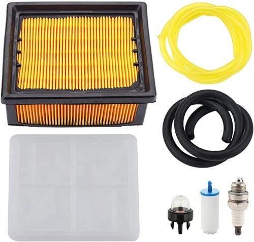 Package include: 1 air filter, 1 inner filter, 2-feet yellow hose, 1 primer bulb, 1 fuel filter & 1 fuel line, 1 spark plug