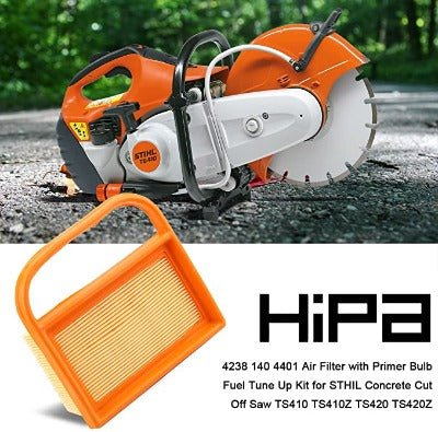 Hipa Maintenance Kit includes an air filter, fuel filter, and spark plug. It provides a wonderful solution for homeowners to maintain or tune-up their gas-powered cut off saw. It helps protect the engine from harmful dirt, enhances fuel efficiency, reduces exhaust gas emissions, and provides a longer life for the engine.