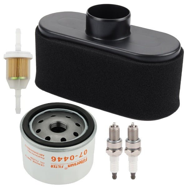 1x Air Filter, 1x 07-0446 Oil Filter, 1x Fuel Filter, 2x Spark Plugs.