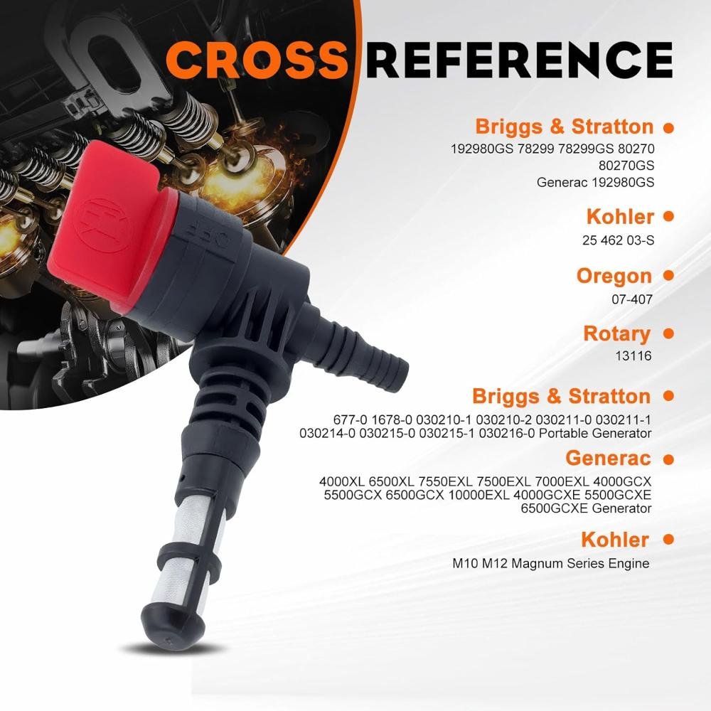 ● Generator fuel tank shut off valve Replaces # 192980GS 78299GS 80270GS
