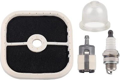 Package includes: 1x air filter, 1x fuel filter, 1x primer bulb, 1x spark plug.